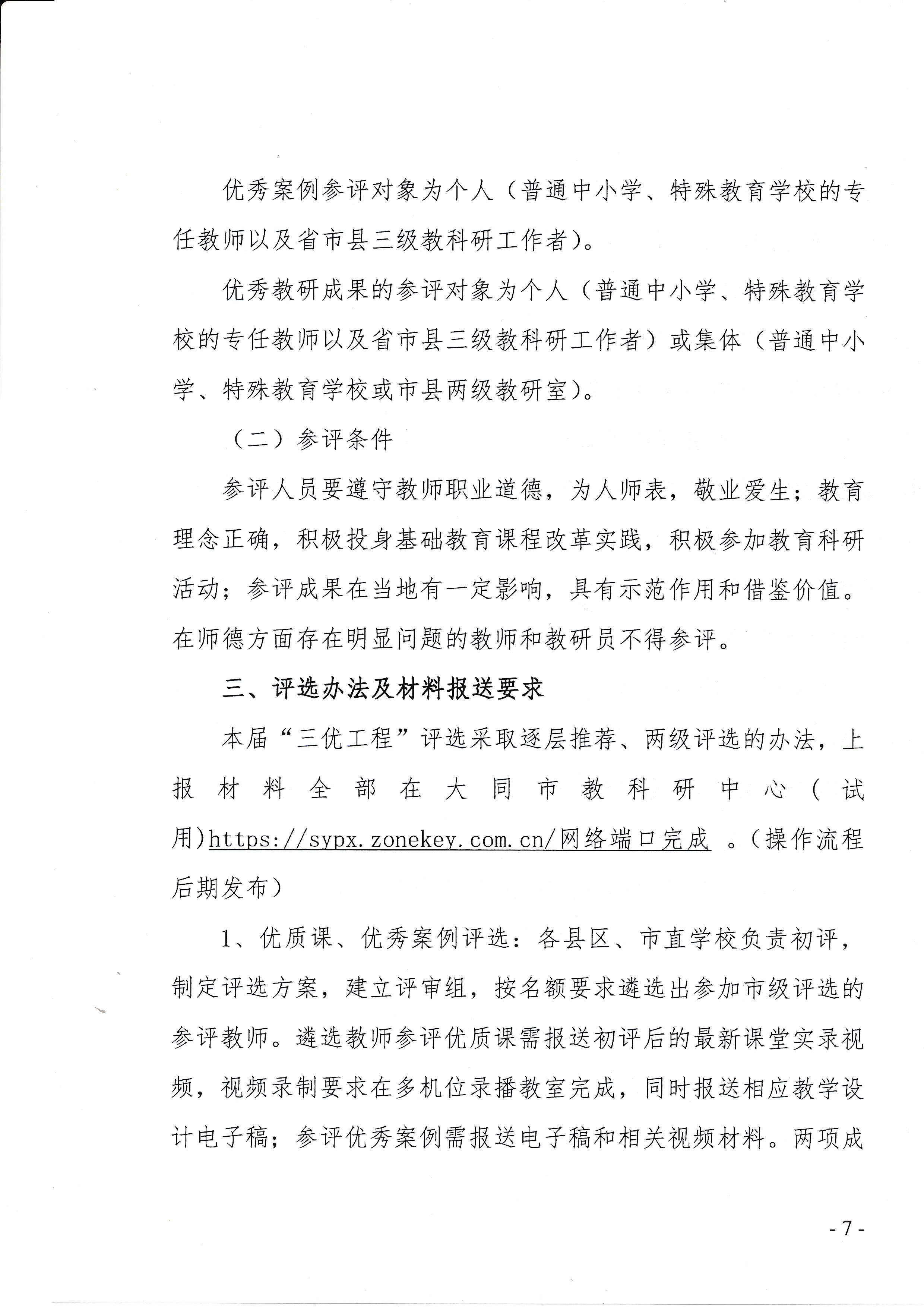 材料报送:优质课和优秀案例需报送电子稿和相关视频材料,优秀教研成果需报送电子文稿。所有材料需在规定时间内报送至大同市教育科学研究中心。